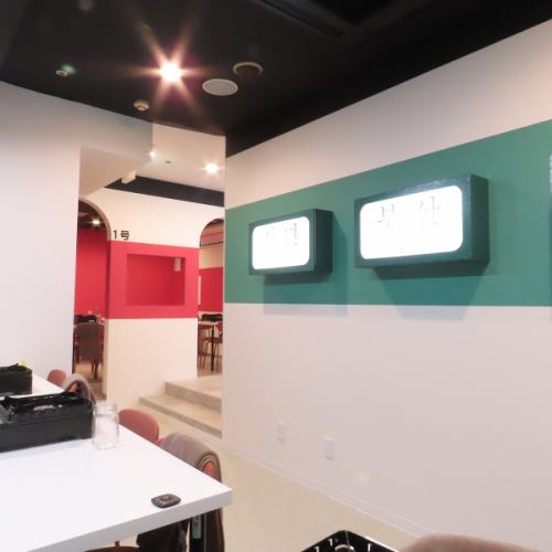 店内は、韓国の繁華街を思わせる、テーブル席があります。30名様から貸切可能なので、ご宴会やパーティーなどにもご利用いただけます。会社のご友人や家族でのご来店や女子会、ママ友など、様々なシーンでご活用下さい。ご予約のご相談もお受付します。